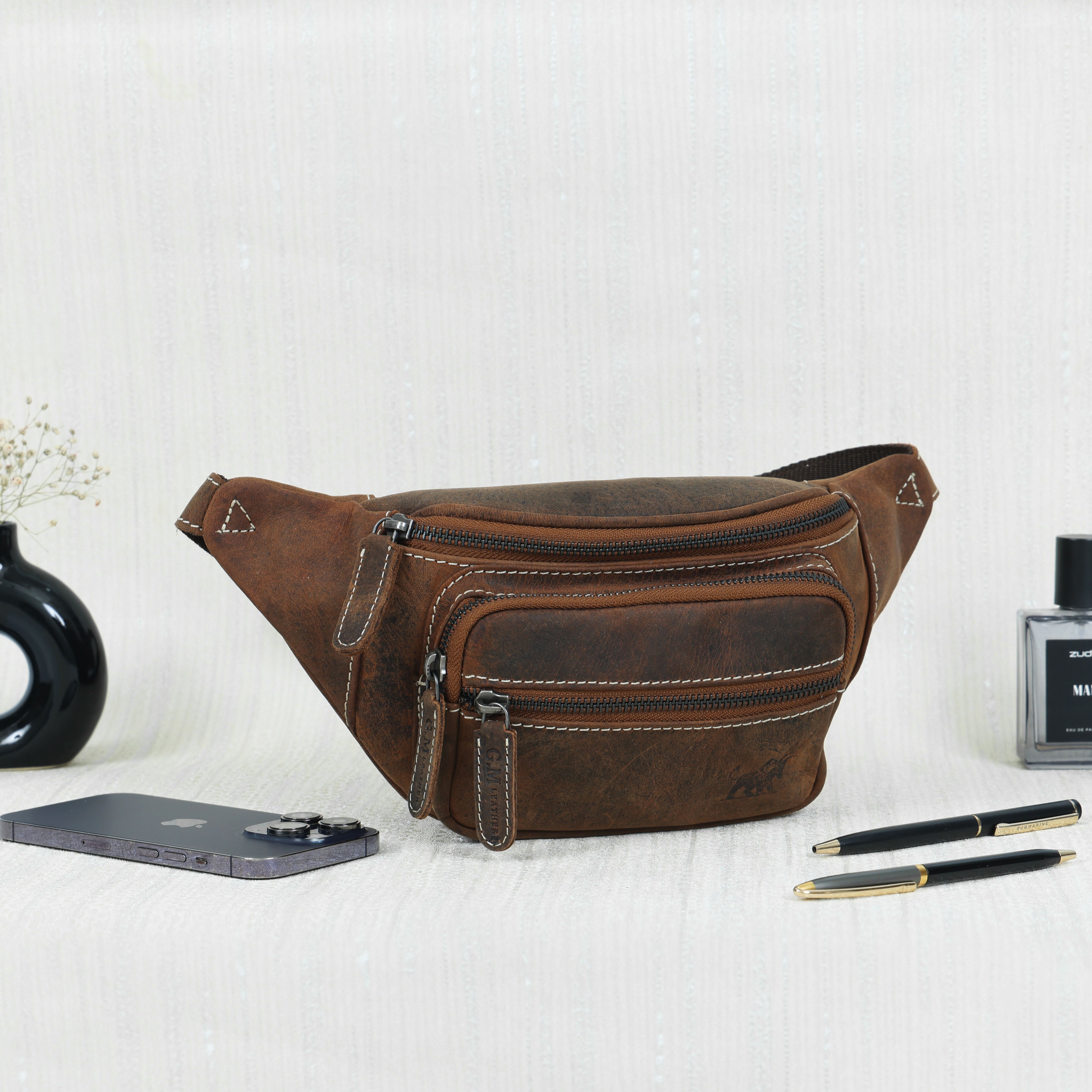 For the global traveler and discerning individual, this Buffalo Hill hunter leather fanny pack is the ultimate statement in rustic luxury and functionality. Crafted from premium "crazy horse" or "pull-up" cowhide, this vintage-style belt bag develops a rich patina over time, making each piece uniquely yours. The thoughtful design features multiple zippered compartments, providing secure and organized storage for all your essentials. The robust zippers and durable construction ensure this bag can withstand the rigors of daily use and travel. This handcrafted fanny pack is more than just an accessory; it's a legacy piece that combines rugged charm with modern convenience, perfect for hands-free adventures and urban exploration.