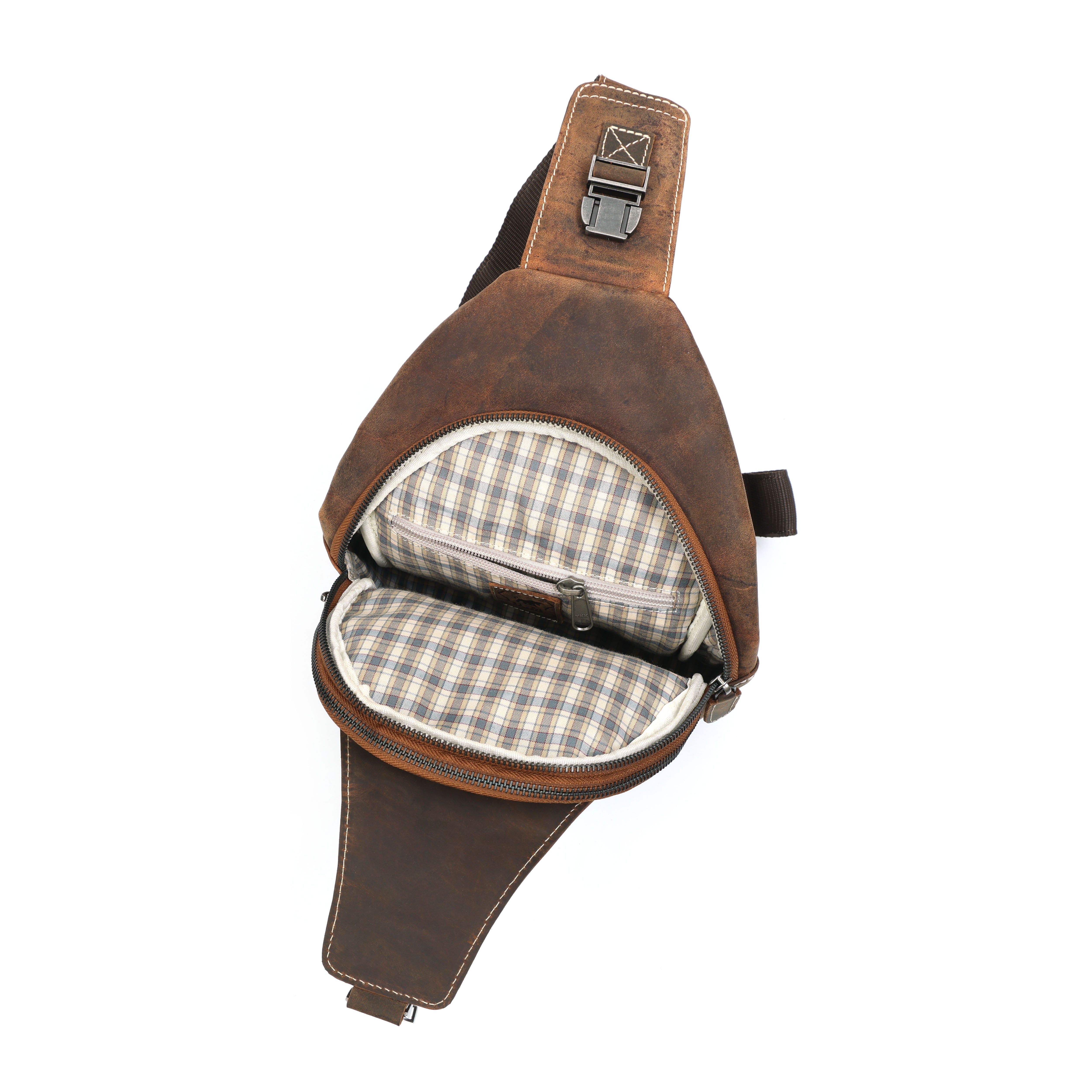 The GM Leather crossbody chest bag is designed for men who want hands-free comfort without sacrificing style. Made from full-grain leather, this everyday and travel bag develops a rich patina over time, giving it a rugged yet refined look that gets better with age.