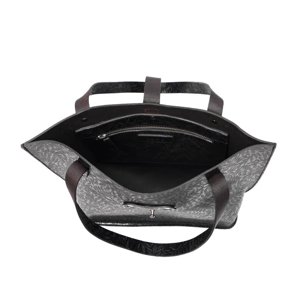 Handcrafted Leather Tote Bag – Black Tooled Carryall for Everyday Use(1404 e)
