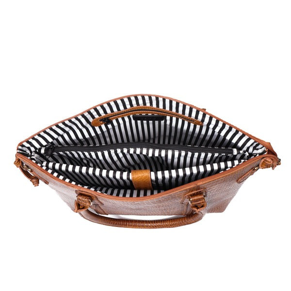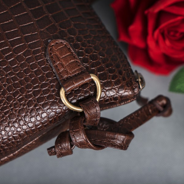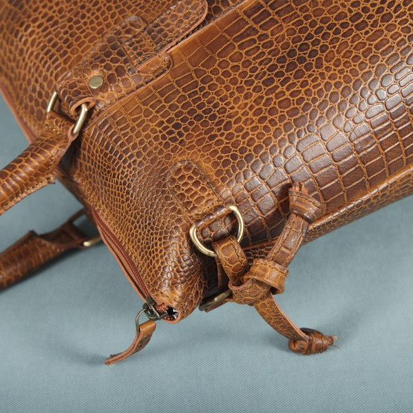 Premium Leather Laptop Tote Bag – Handcrafted Women’s Work & Travel Shoulder Bag | Stylish Brown Croc-Embossed Design