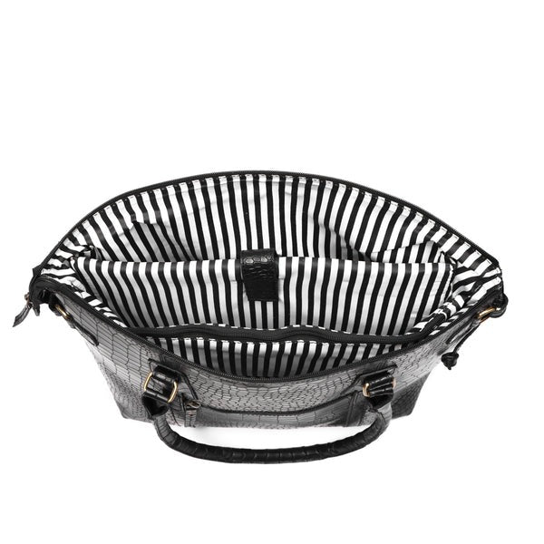 Featuring a sophisticated crocodile-embossed texture, spacious interior, and secure zipper compartments, this leather tote easily fits your laptop, tablet, documents, and essentials while keeping everything organized. Its reinforced leather straps offer comfort and strength, making it an ideal companion for busy professionals, students, and travelers.