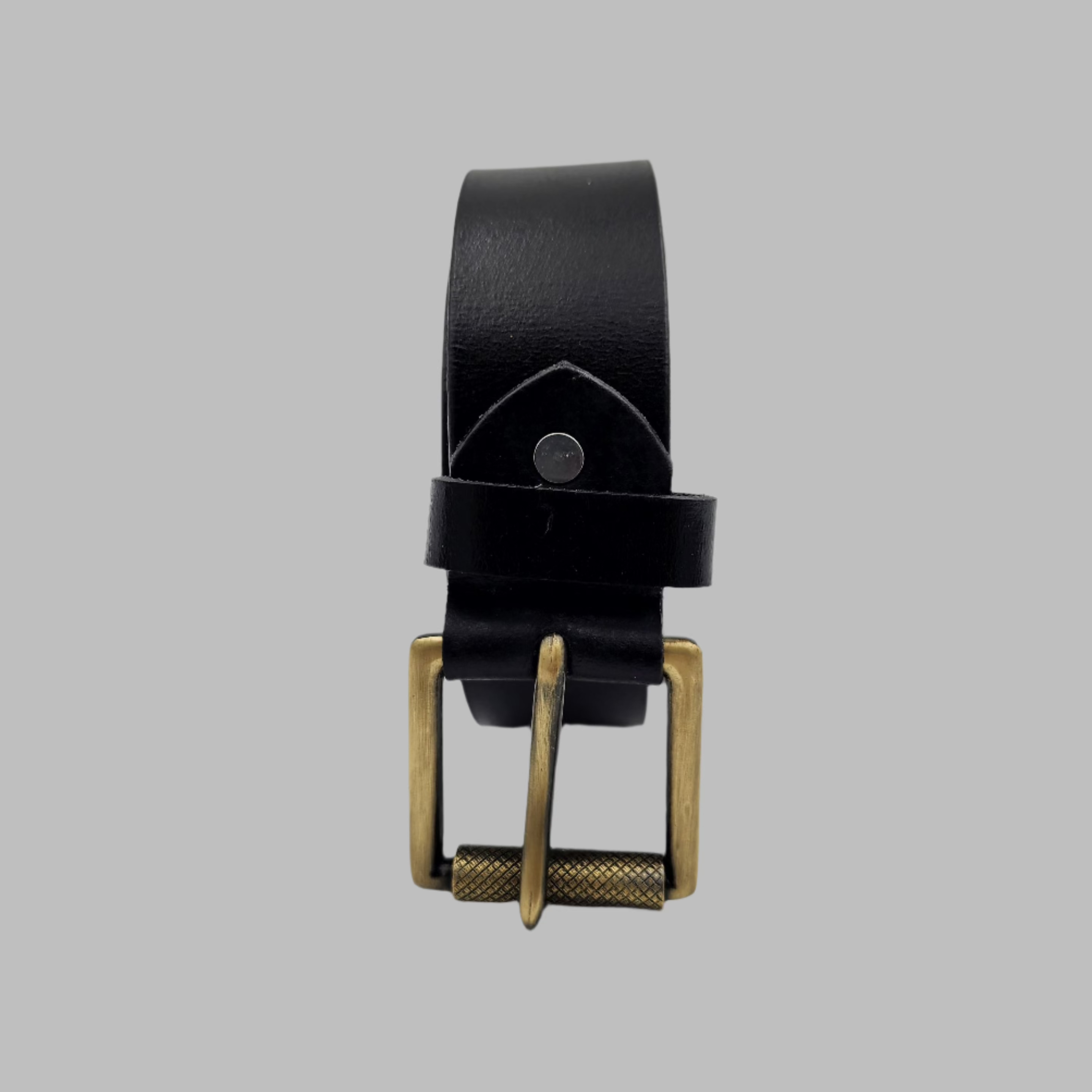Premium Black Leather Belt | Classic Brass Buckle 38mm