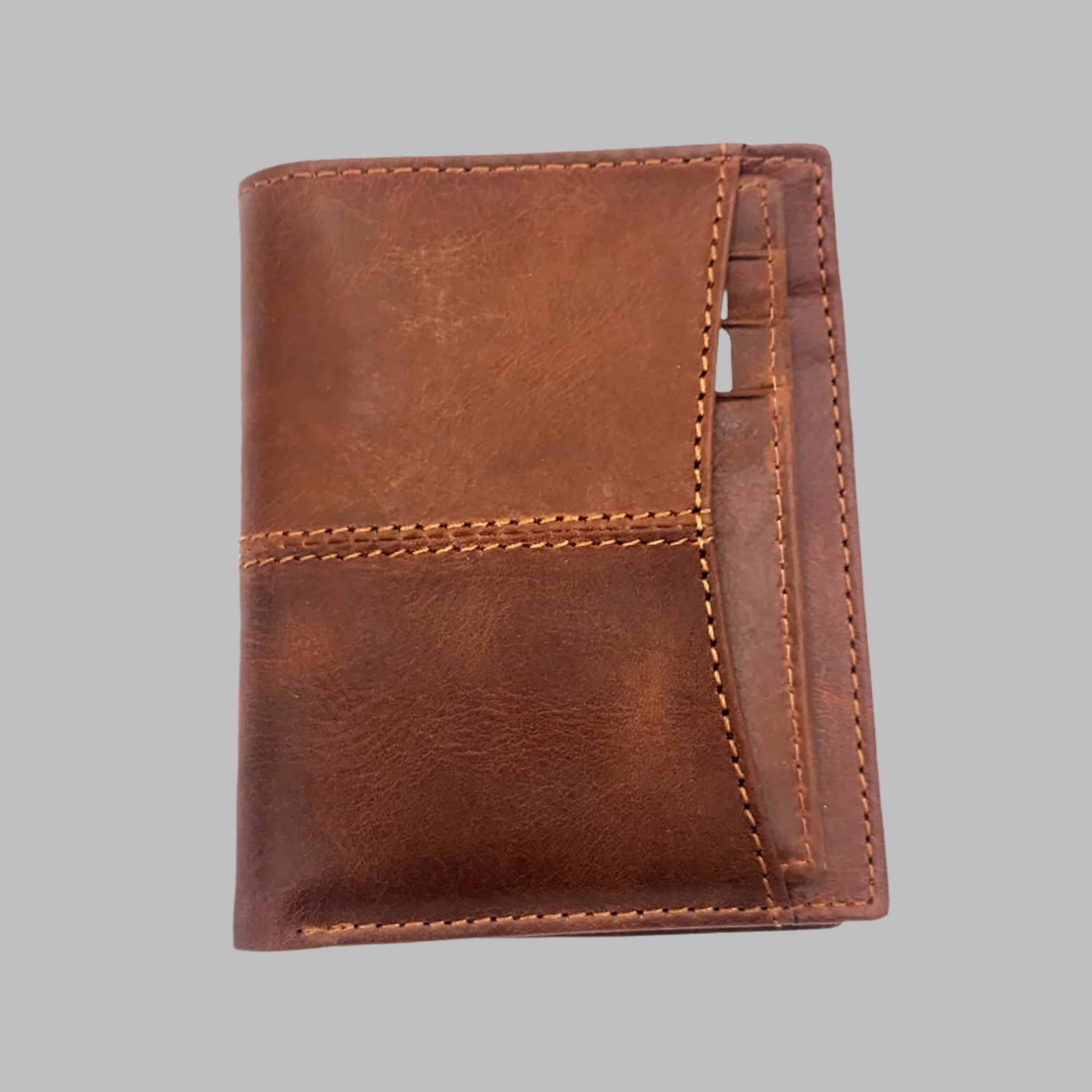 The Long Brown wallet with detachable card holder is crafted from robust Genuine leather, offering multiple compartments along with an extra zipper compartment inside for added storage.